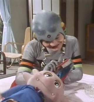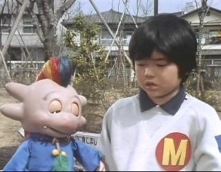 タタリ君という怪人の造型だが、全身タイツにオカマ言葉というのは定番のようだ。それに赤フン。変態以外の何者でもない(笑) 特筆すべきは彼の能力で、「タタリ風」などと言ってマリやママのスカートをめくったり、冷蔵庫の食べ物を浮遊させたりするのだが、いずれもこの能力は「タタリ」なのか果たして? という感じ。将棋に夢中で仕事を押しつけた伸介のことをすっかり忘れているカミタマンに「お前には友情というものはないのか」と説教する(要するにタタリはネモトマンが伸介だってわかってるわけだよねw)。