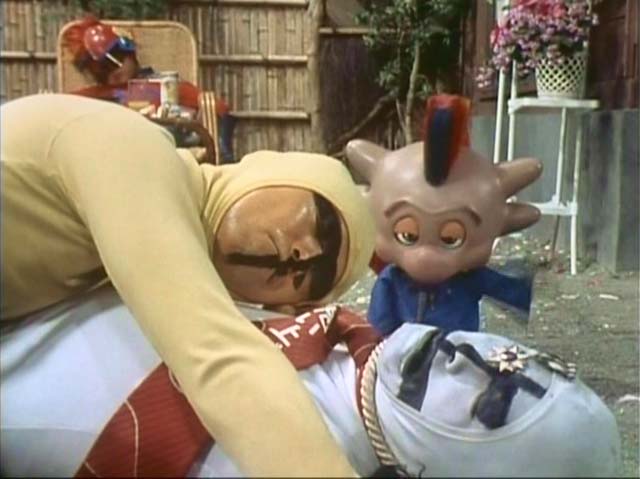 やがて「二人」は根本家の庭に、実体化した。このままでは到底思い下がりに勝ち目はない。カミタマンはカミタンブーメランで助太刀。高く空に舞い上げられた思い下がりのダイビング・ボディアタックで、何とか思い上がりをノックアウトできたのだ。