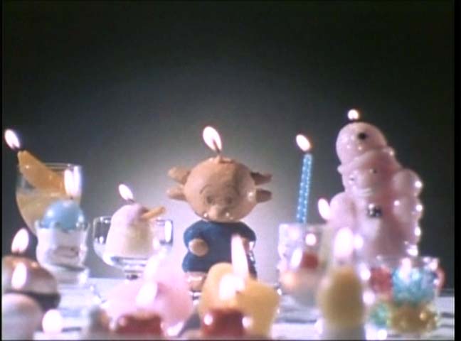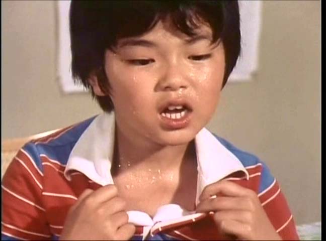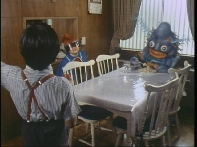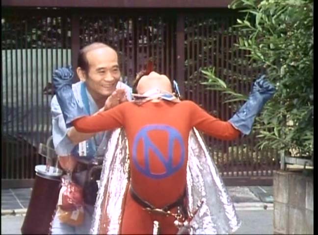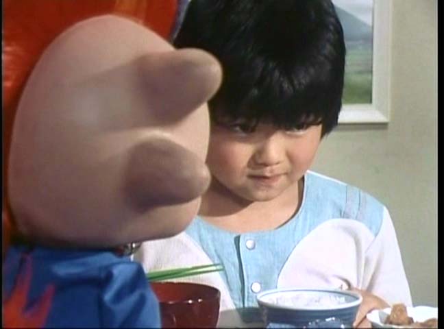そして何より、序盤のネモトマンの活躍シーンのいかれ具合。おでんの浮かんだ風呂に入る女優さんもきついけど、そのおでんを食べるという……まあ、たぶん浮かんでたやつそのものではないとは思うけど(そうだったら児童虐待だなw)。寿司もそばも本物。ばくばく食ってる(食わされてる)岩瀬君。だいぶ序盤の頃と外見自体変わってきてます。ほぼ間違いなく、制作スタッフの偉い人の誰かが、太めの男の子大好きなんだよね。ペットントンでもガン太くんのフィーチャーぶりは尋常ではなかったし……。