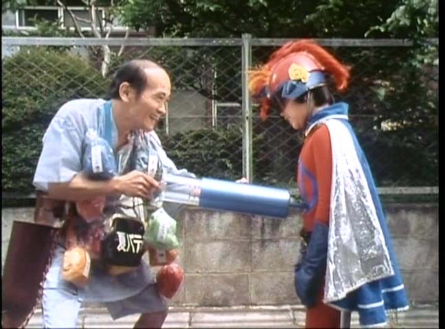 (お年寄りに襲いかかる寿司を食いつくしお年寄りを救助するネモトマン)